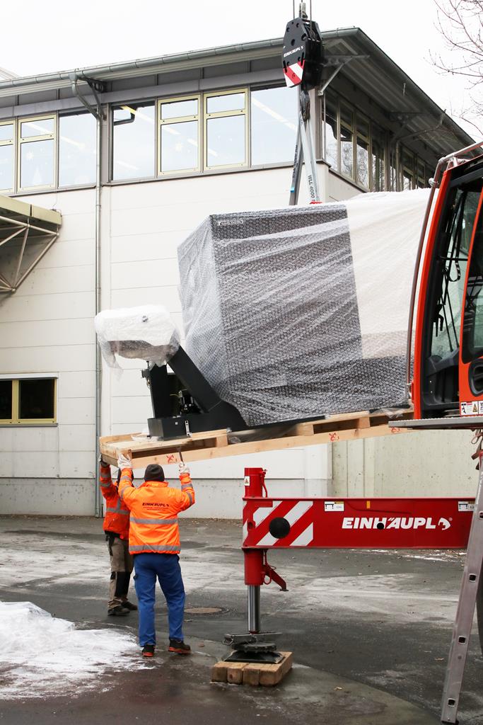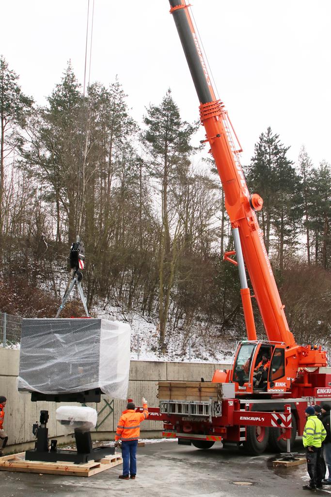 Bei der Anlieferung des rund sechs Tonnen schweren Ungetüms war Millimeter-Arbeit erforderlich.
